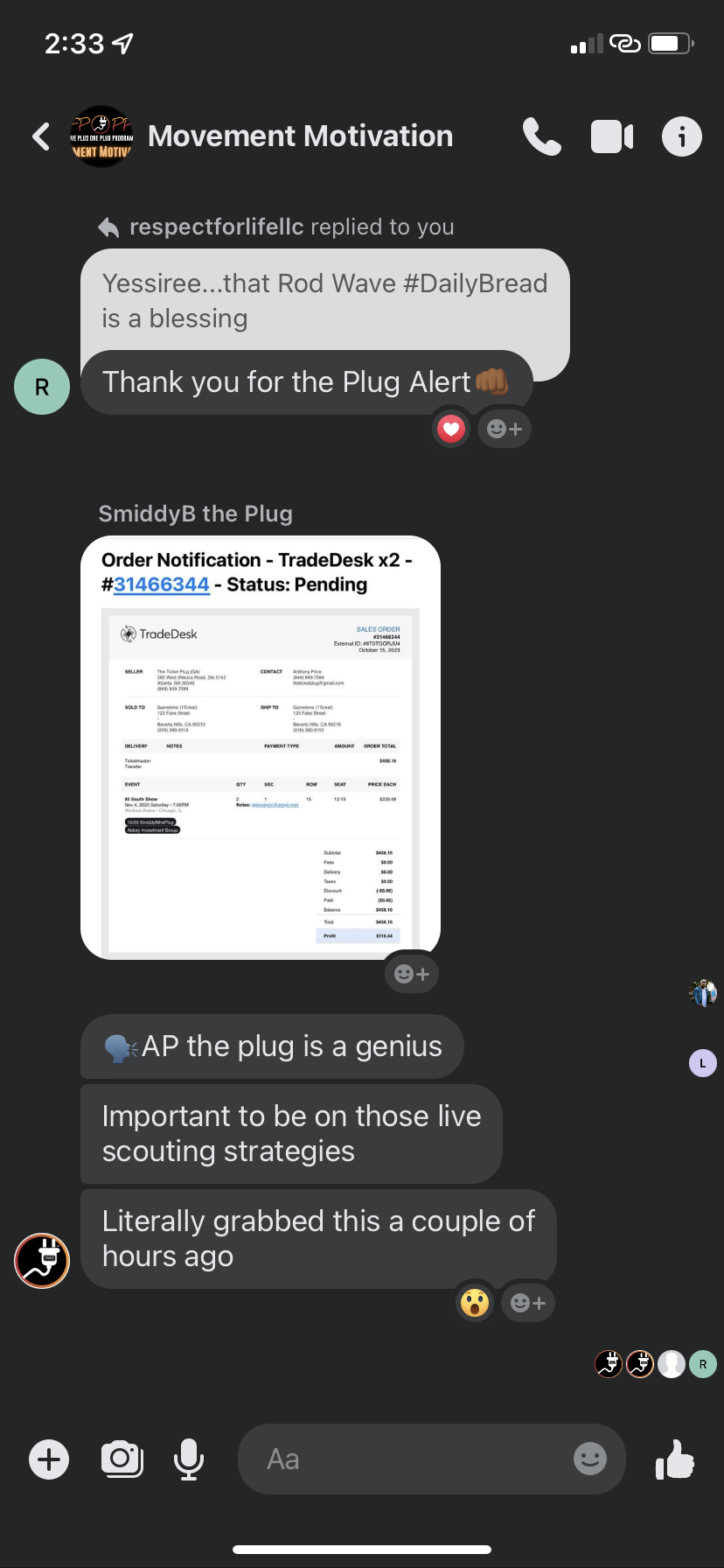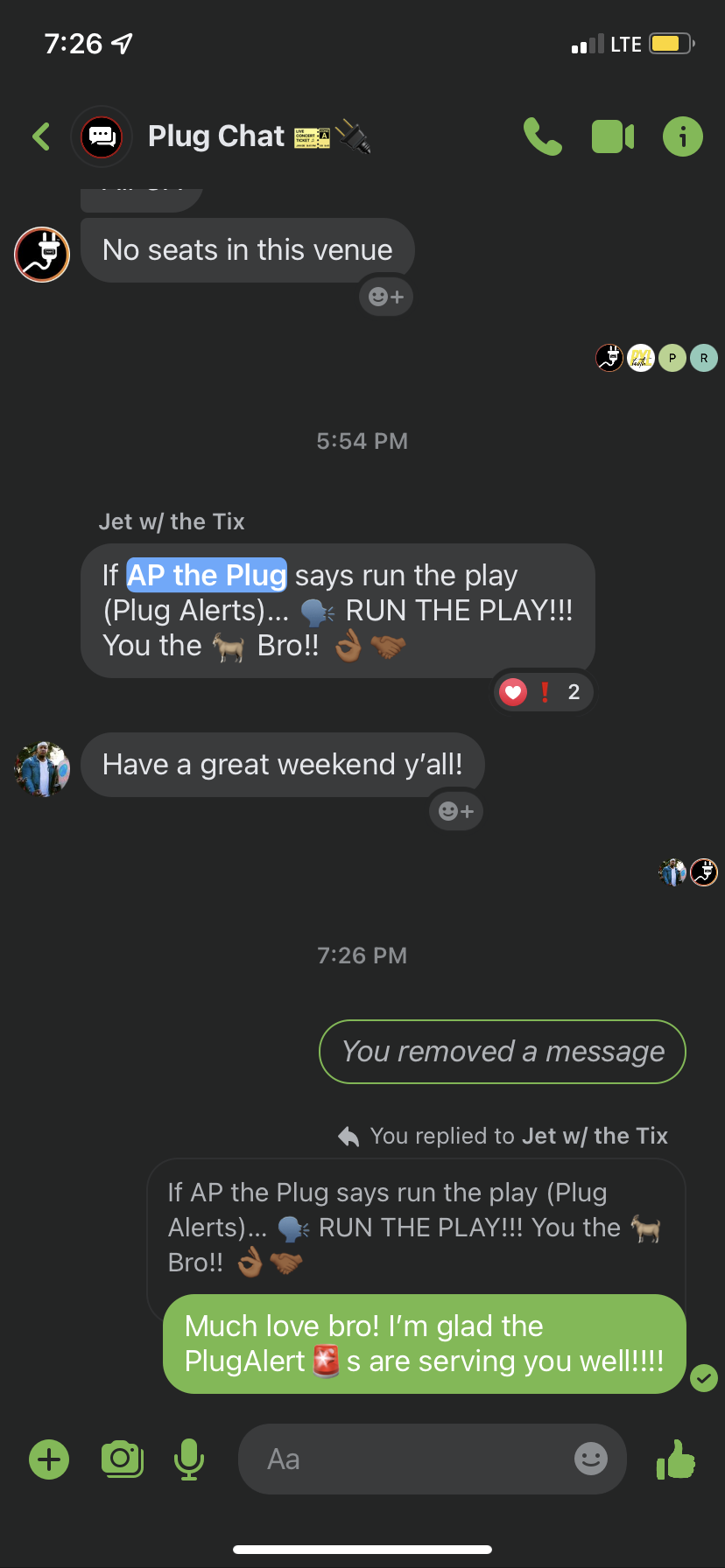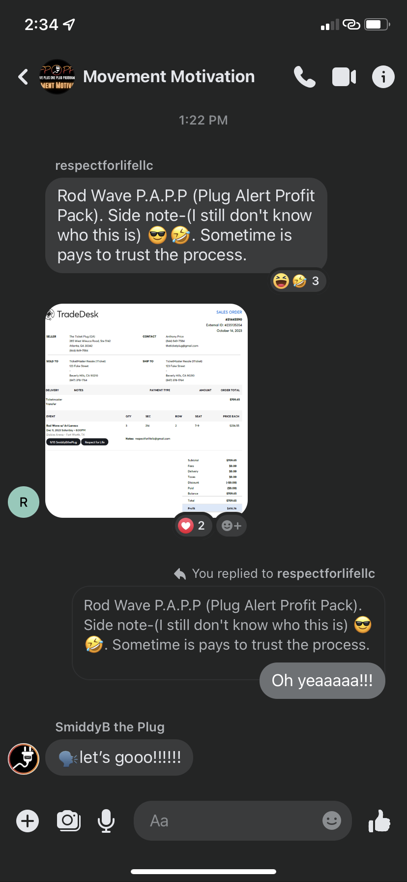 The results of a Plug Alert🚨 is subject to the internal & external factors that come into play for reselling an event. You should not pursue every Plug Alert🚨, but rather use your scouting ability and strategies to decide if a particular Plug Alert🚨 is something you want to take on. All Plug Alert🚨 you take on are at your own risk.